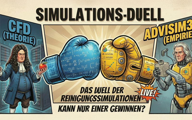 07.01.2026 | Das Match-up der Vergleichsstudie ist krass. Was passiert, wenn dieselbe Reinigungsaufgabe von CFD, dem Goliath, und von ADVISIM3D, dem David unter den virtuellen Reinigungssimulationen, unter folgenden extrem unterschiedlichen Studienbedingungen gelöst werden muss?